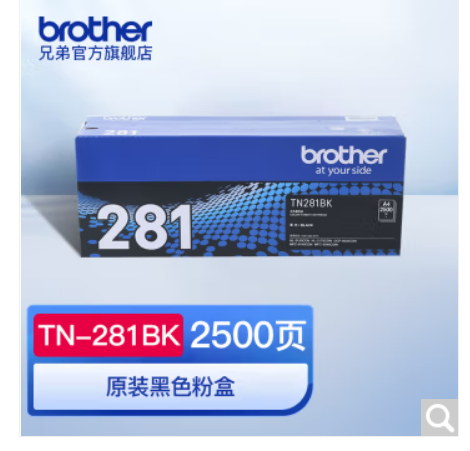 商品名称:兄弟(brother)TN-281BK黑色原装硒鼓墨粉盒(适用HL-3150CDN 3170CDW DCP-9020CDN MFC-9140CDN)