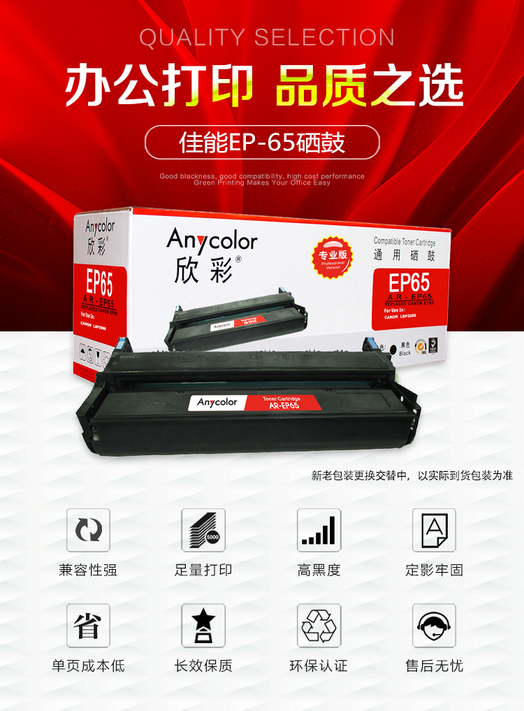 商品名称:欣彩/Anycolor EP-65硒鼓(专业版)AR-EP65 适用 佳能CANON EP-65 LBP2000打印机