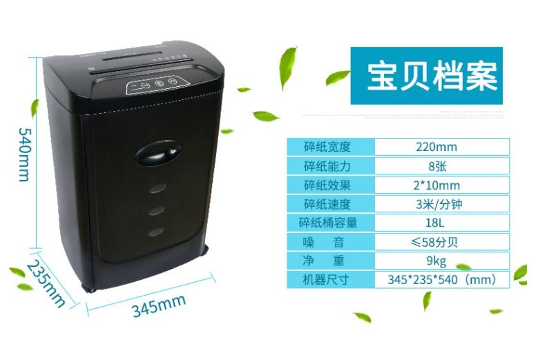 碎纸机 × 1;说明书 × 1;保修卡 × 1;合格证 × 1