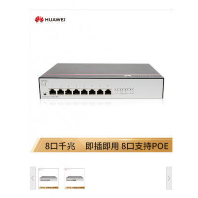 商品名称:华为(HUAWEI)S1730S-L8P-A企业级POE供电交换设备(8个10/100/1000Base-T以太网端口,PoE+,交流供电)